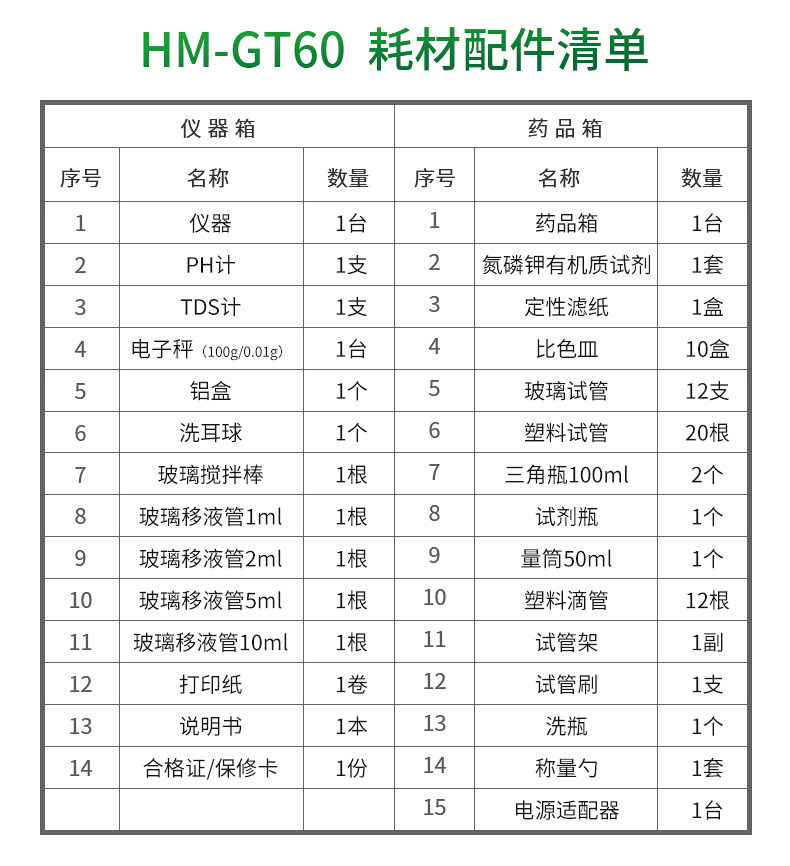 合格證/保修卡 | 份 | 1 | 試管刷 | 支 | 1 |