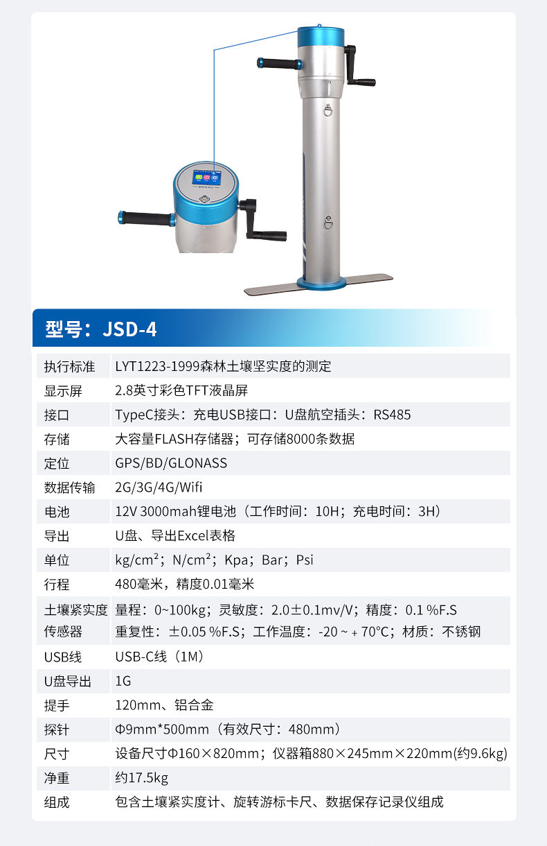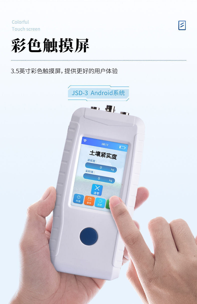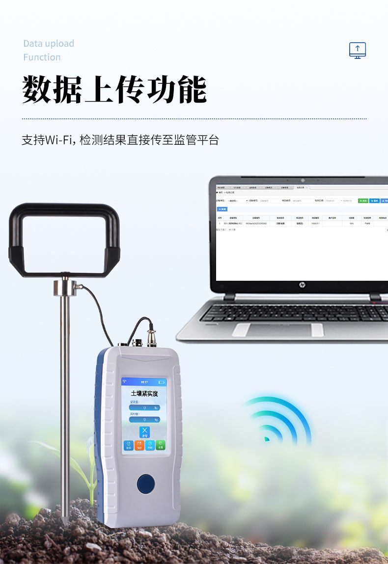 本設備是一種由手持式采集儀和緊實度傳感器所組成的一套土壤墑情監測系統。同時具備操作簡便,攜帶方便,檢測迅速可靠等優點,在領域中可謂獨樹一幟。手持式采集儀可根據用戶需要出廠配置GPS、GPRS數據上傳等功能,設備中的數據也可以通過USB數據線連接電腦,并將歷史數據導出到電腦中進行數據分析。